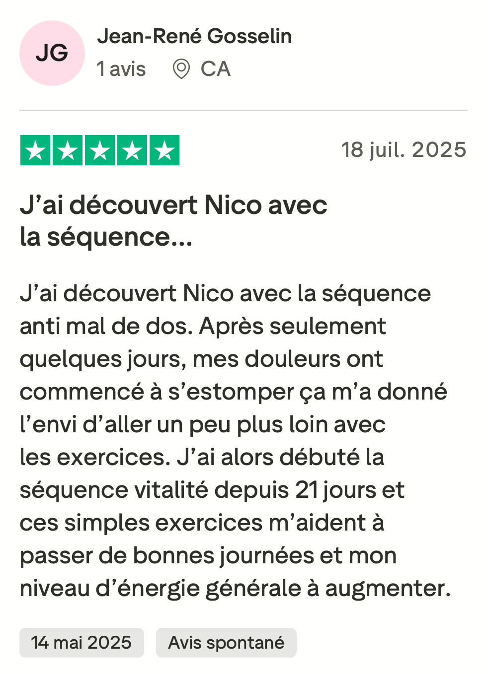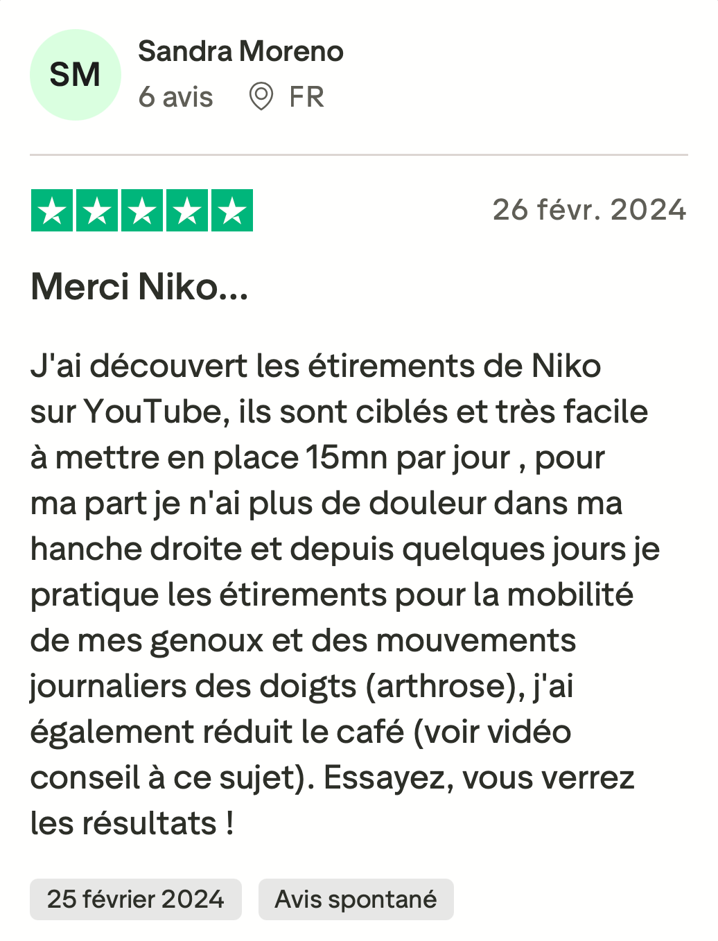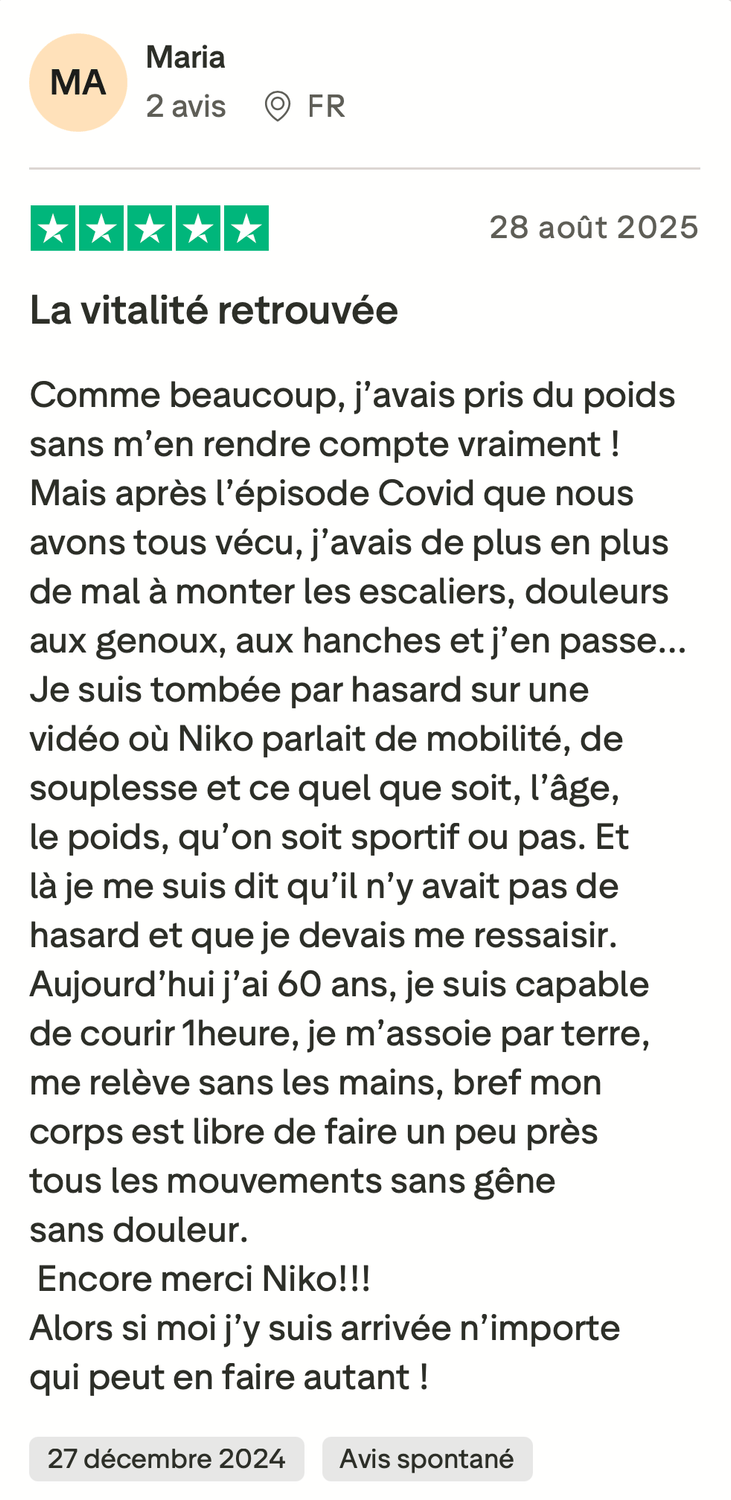 Découvrez comment plus de 15 361 personnes de 40 à 80 ans ont réussi à soulager leur douleur et à gagner en souplesse naturellement en seulement 15 minutes par jour grâce au Dojo.